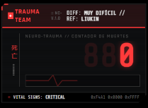 La interfaz visual («HUD») está diseñada con HTML estándar y CSS moderno, sin frameworks pesados. Para lograr la estética de Trauma Team, se utilizaron: