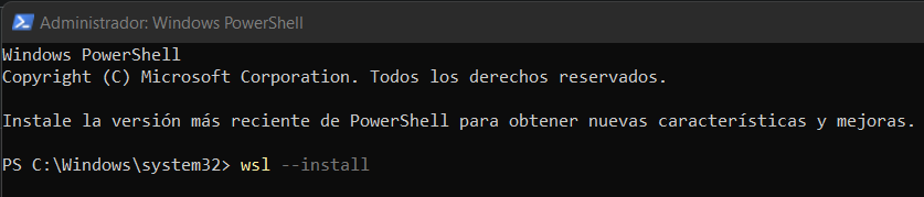 Este comando habilita las características necesarias, instala el kernel de WSL 2 y Ubuntu por defecto. Reinicia el equipo cuando termine el proceso.