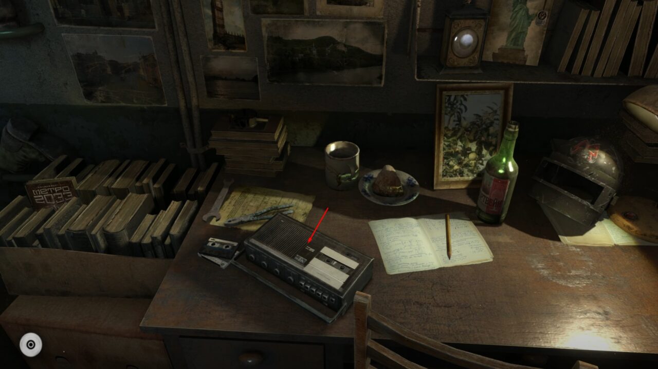 Nos levantamos y encima de la mesa hay una cinta que podemos reproducir, una lámpara que podemos apagar y una guitarra que podemos tocar, tras hacer esto, nos saldrá el primer destello de buena acción del juego.