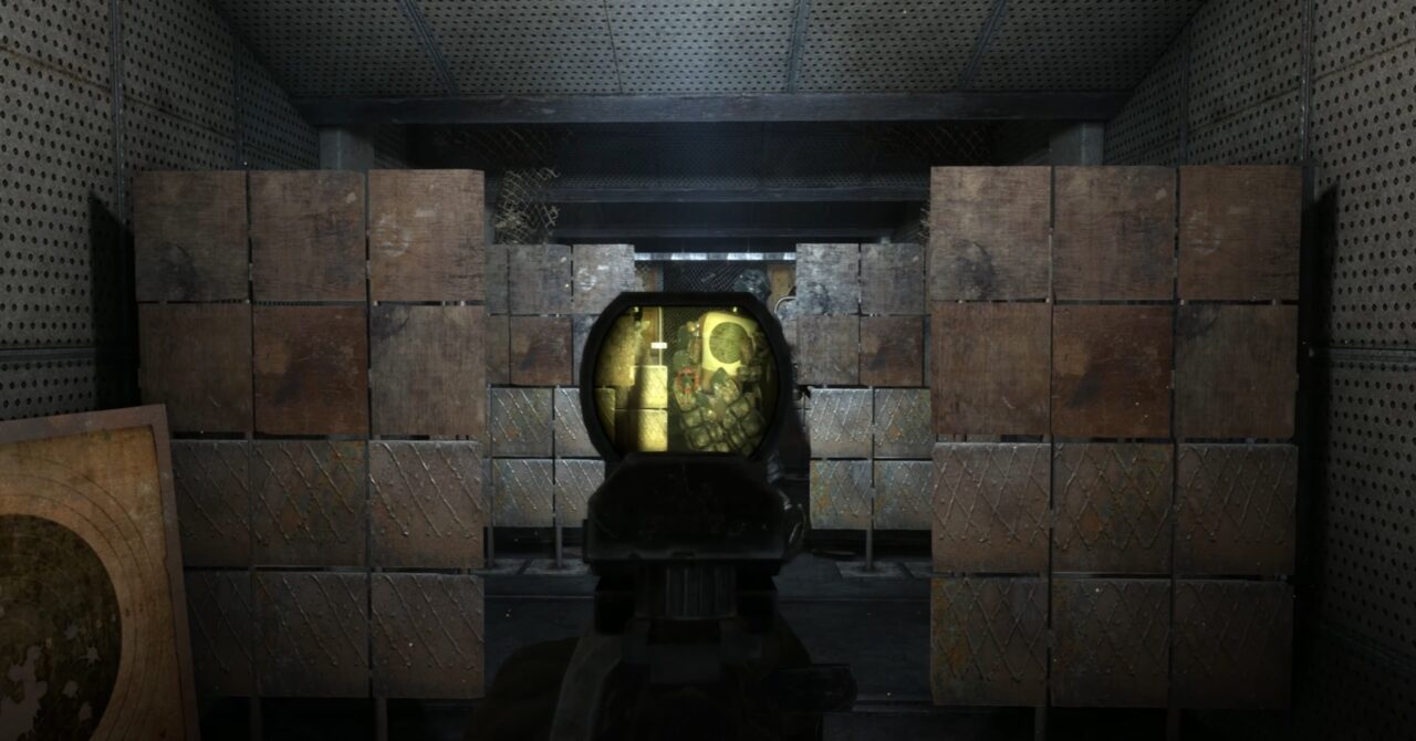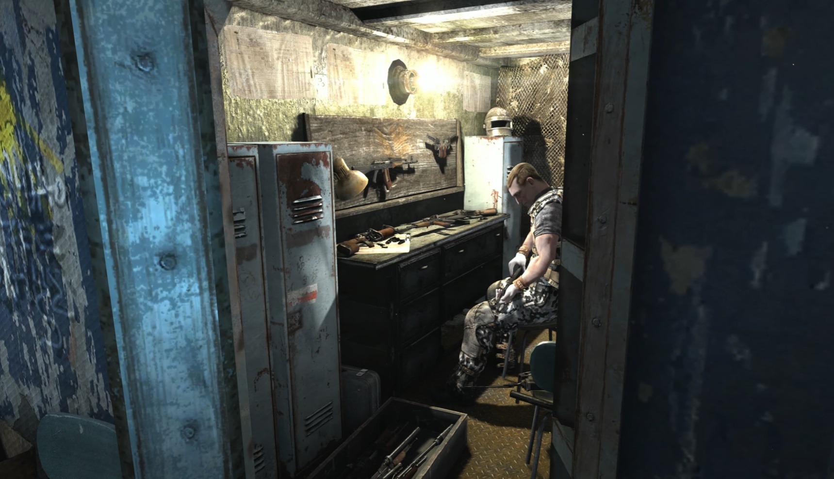 Seguimos y vemos una sala de entrenamiento. Al continuar, pasamos por la armería en la que recibimos una máscara de gas, unos filtros, kits médicos y unas balas de calidad militar.
