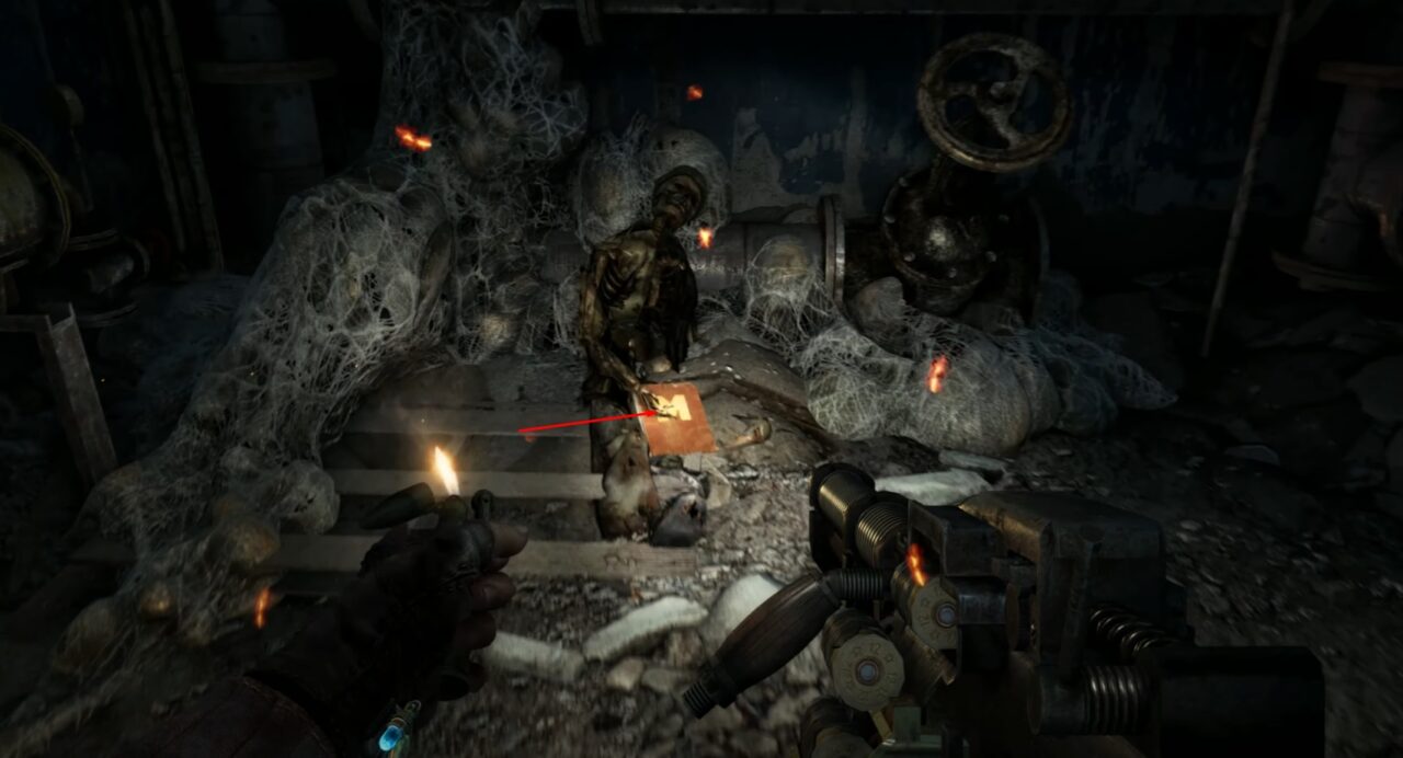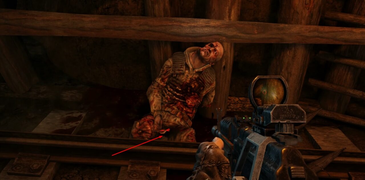 Nada más coger el control de Artyom miramos a la izquierda y cogemos una llave que tiene el cuerpo que está en el suelo.