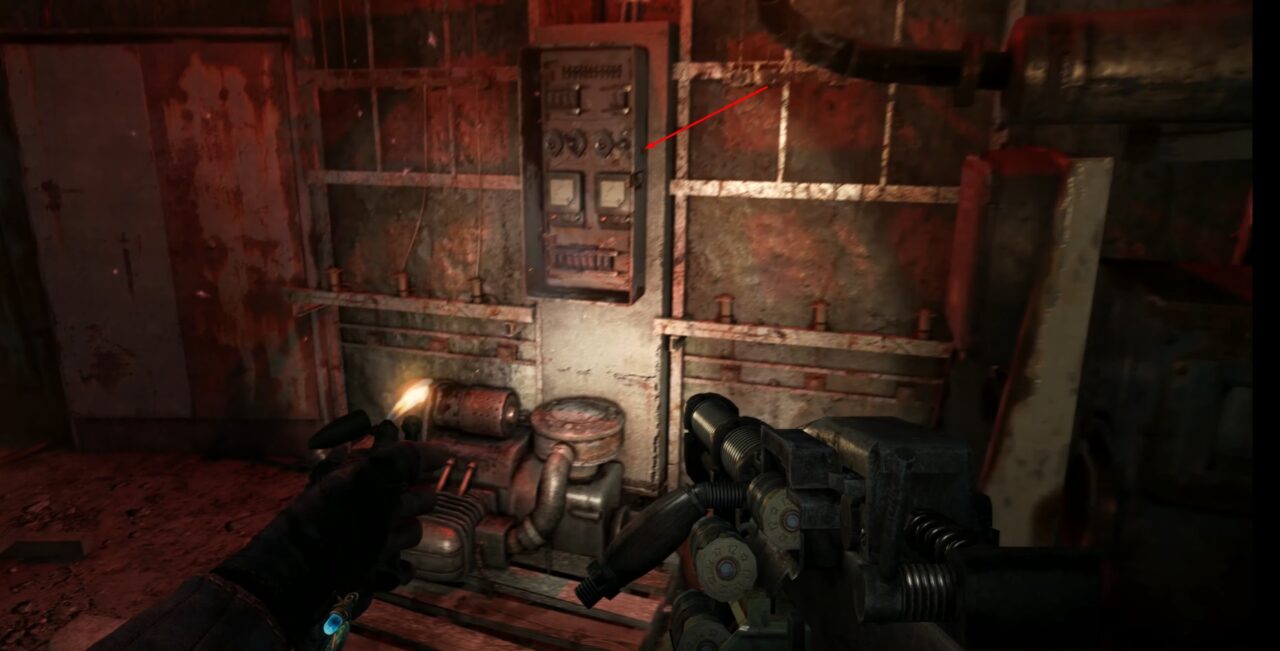 Tras avanzar por la zona un poco más llegaremos a una habitación iluminada de color rojo que tiene una caja de fusibles con la que debemos interactuar, tras esto, volvemos con Pavel.