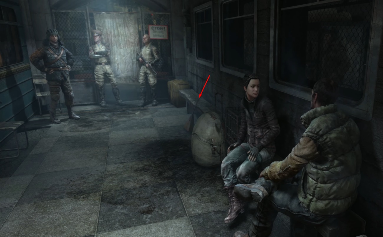 Después de presenciar varias conversaciones de los habitantes del metro por las que nos saltará una buena acción, seguimos avanzando hasta ver a Pavel al lado de varios guardias.